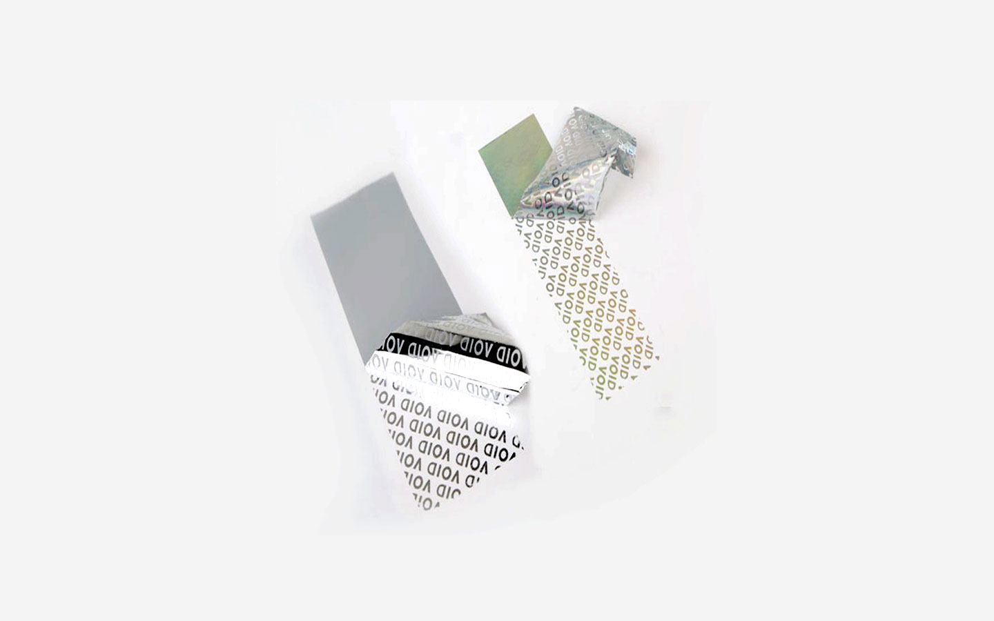 These are special labels which leave behind a unique pre-designed pattern if the label is removed after having applied to the substrate. So the label once applied, cannot be removed from one compressor and stuck onto another compressor (say a fake one) because the label will have a unique pattern all across it and hence it will be clearly evident that some tampering has been done
